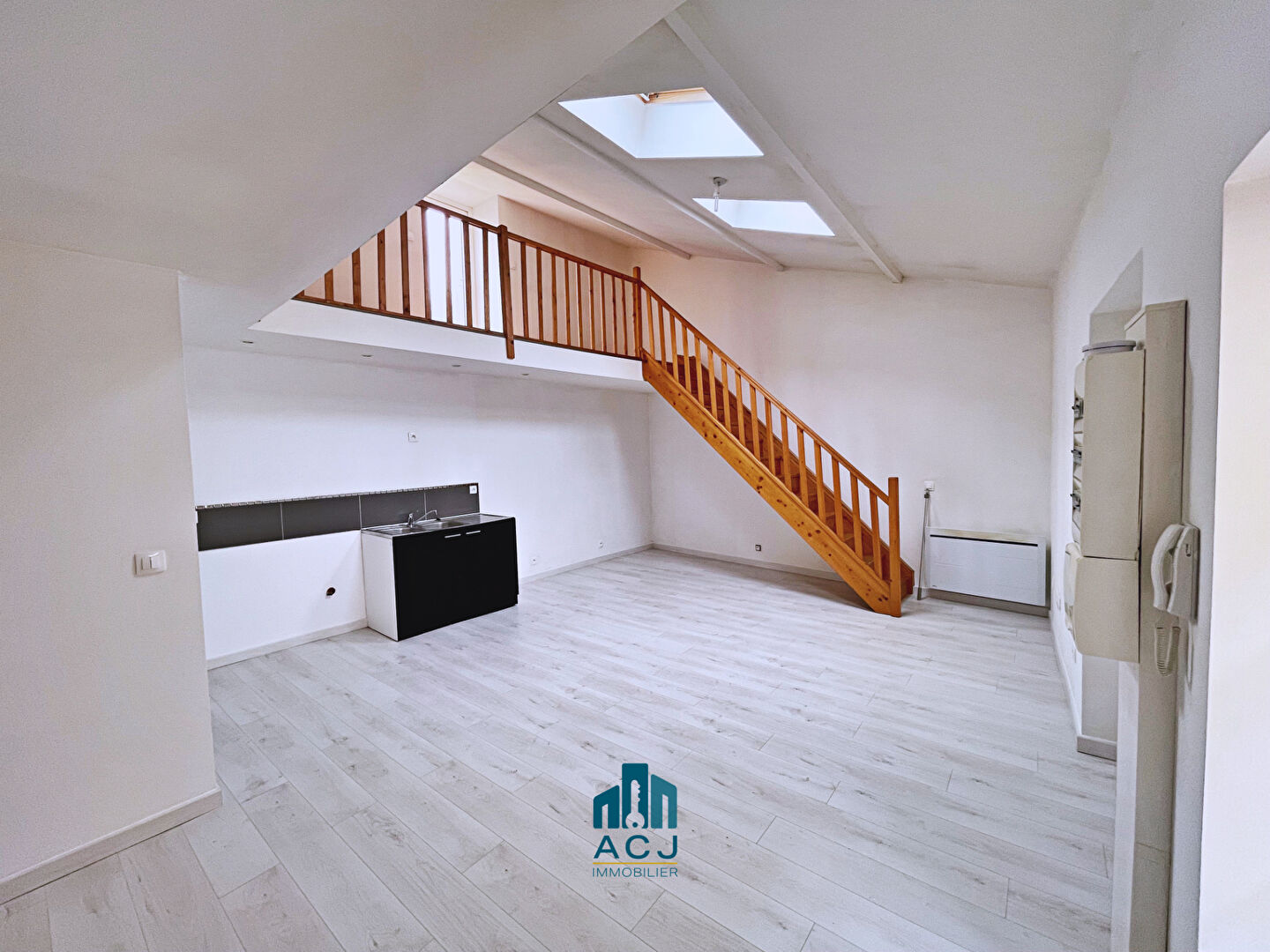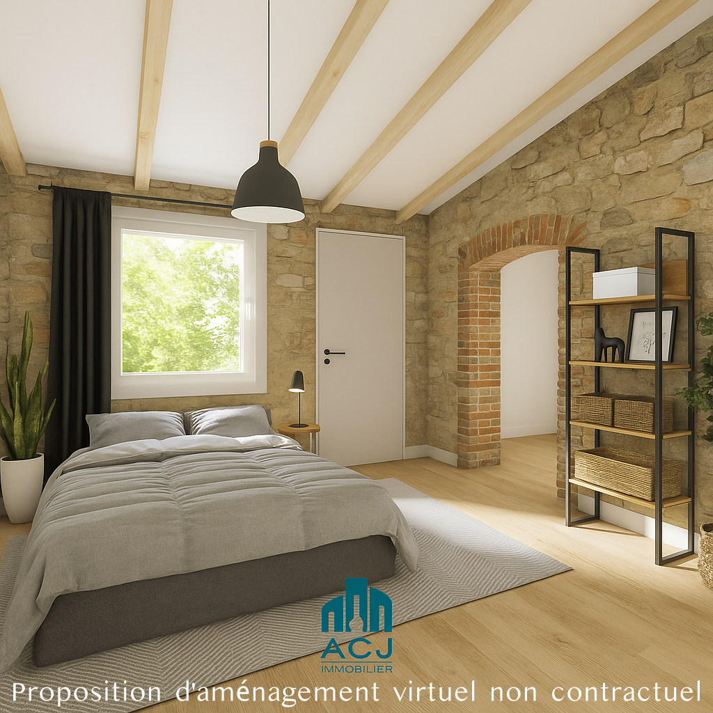 A l’étage, une mezzanine sous pente offre un coin idéal pour télétravailler ou se détendre. Elle donne accès à une pièce attenante déjà close (avec porte et fenêtre), actuellement non exploitée mais présentant un beau potentiel pour être transformée en troisième chambre, salon cocooning ou atelier selon vos envies.