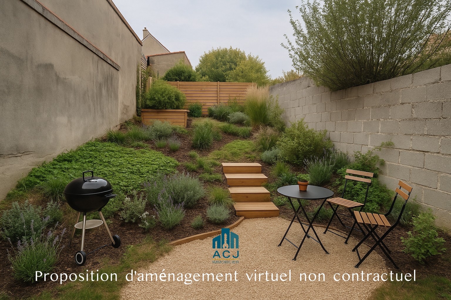 A l’arrière du bâtiment, un jardin privatif vous permettra de profiter d’un véritable havre de paix, sans vis-à-vis, parfait pour les repas d’été ou un coin détente au calme.