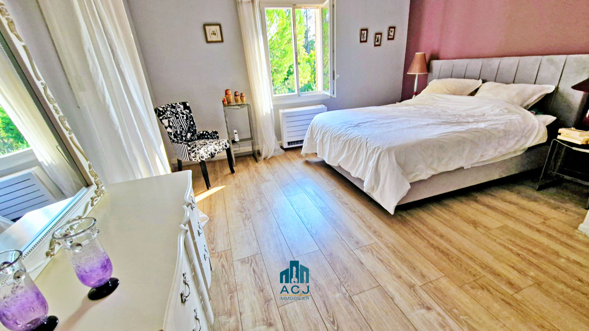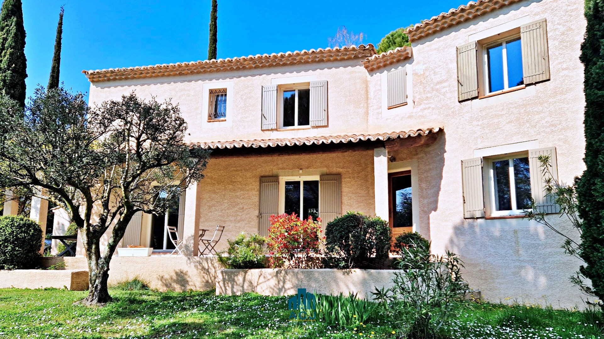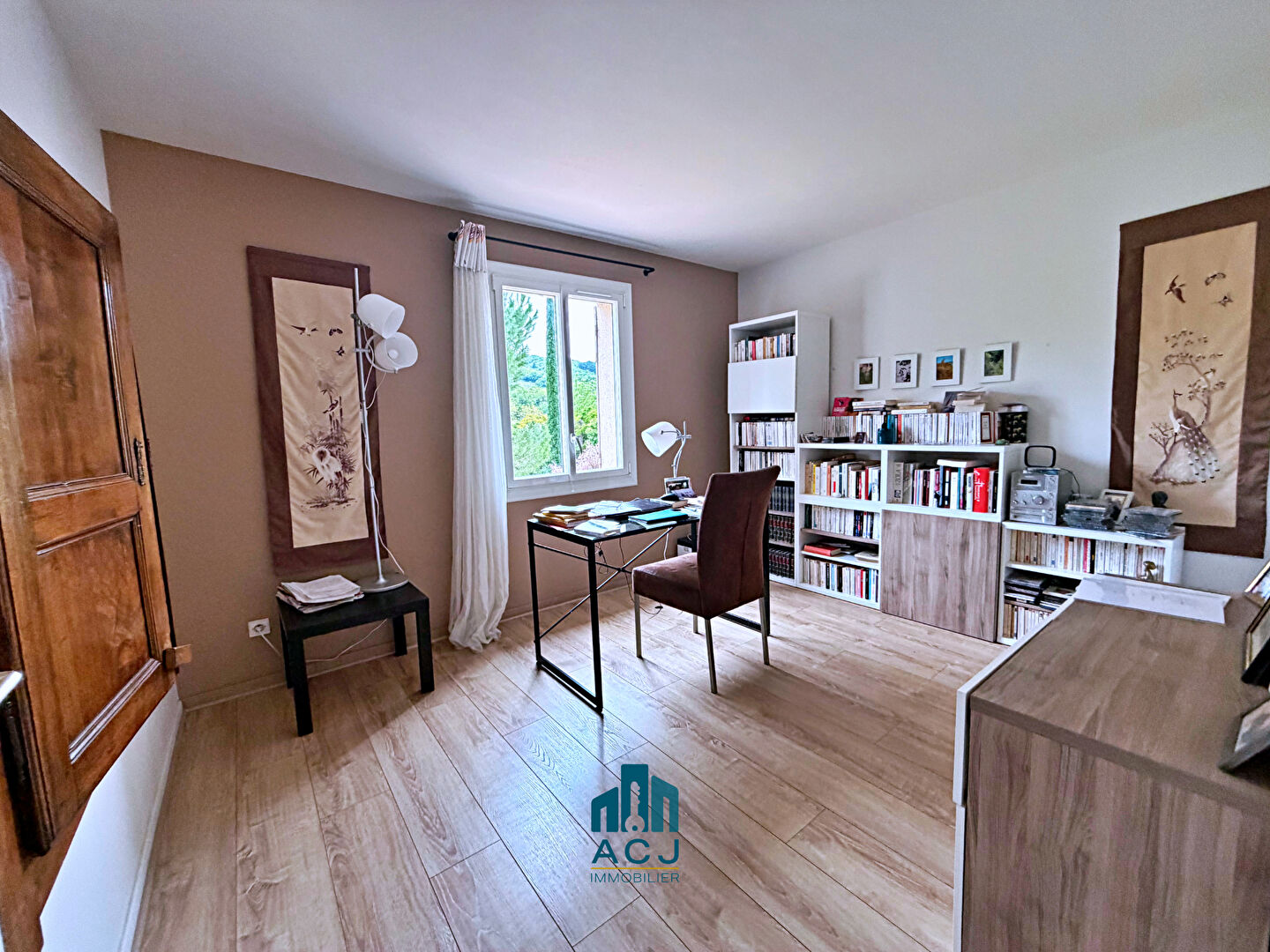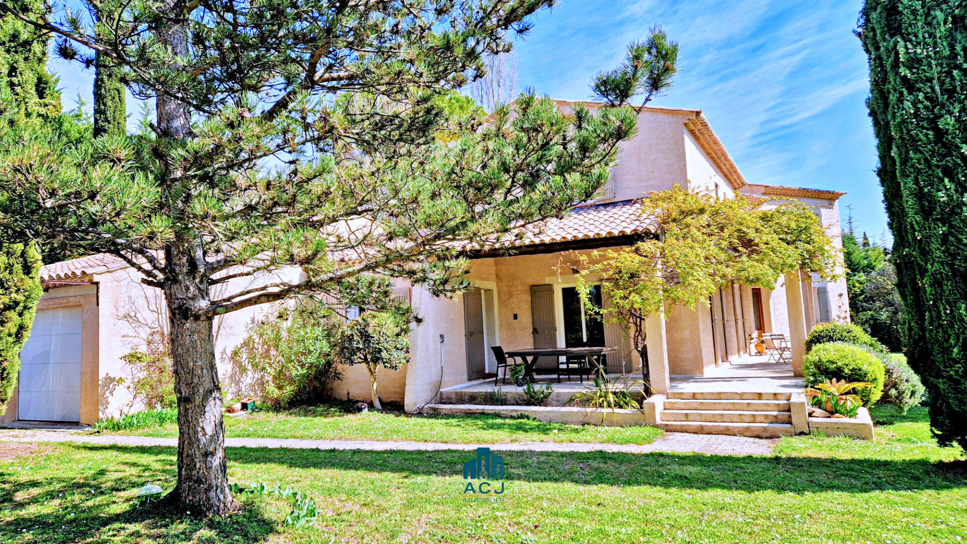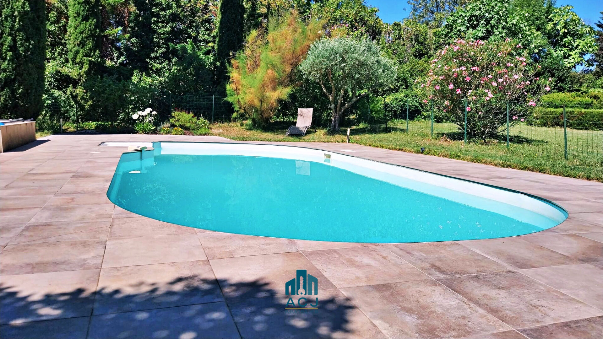 Un terrain paysager de plus de 4 000 m², sans vis-à-vis, avec vue sur les collines environnantes. La piscine devient le point de rendez-vous des belles journées.