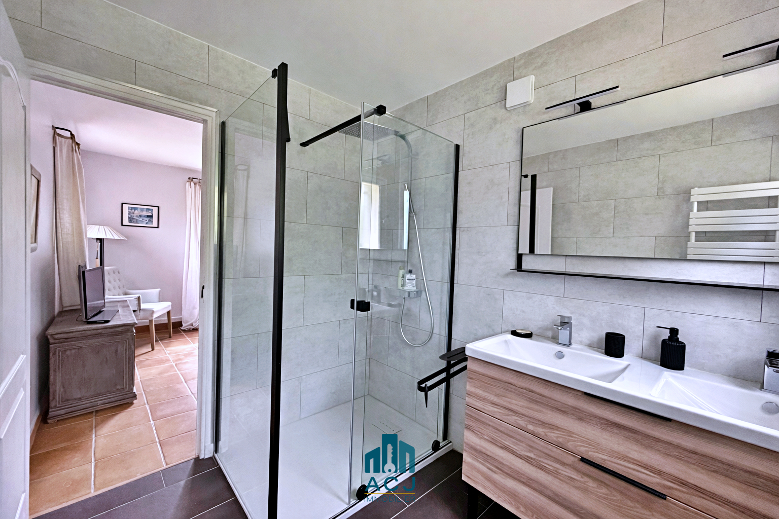 A l’étage, une seconde suite avec salle de bains et dressing, ainsi que trois autres chambres et une troisième salle de bains.